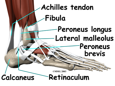 Differences in the anatomy of the groove may predispose some people to peroneal tendon subluxations. The groove may be too shallow. Or the ridge that helps deepen this groove may be too small or even absent. Sometimes, the retinaculum that keeps the tendons in the groove may be too loose. In these cases, patients may not recall any injury to explain the persistent snapping of the peroneal tendons.