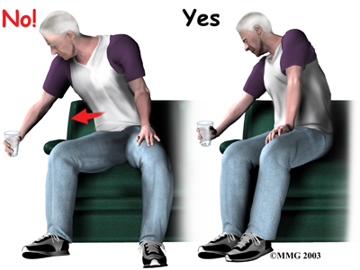 Our therapist will go over specific precautions with you in the preoperative visit and will drill you often to make sure you practice them at all times for six to 12 weeks after surgery.