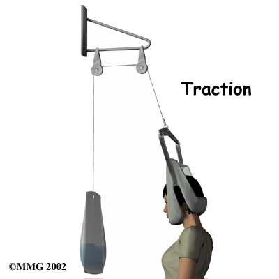 After initial immobilization, our first treatments are used to ease pain and inflammation. Our physical therapist may use electrical stimulation treatments to help calm your muscle spasms and pain. We might recommend traction as a way to gently stretch your joints and the muscles of your neck. This can be done using a machine with a special head halter or our physical therapist can apply the traction pull by hand.